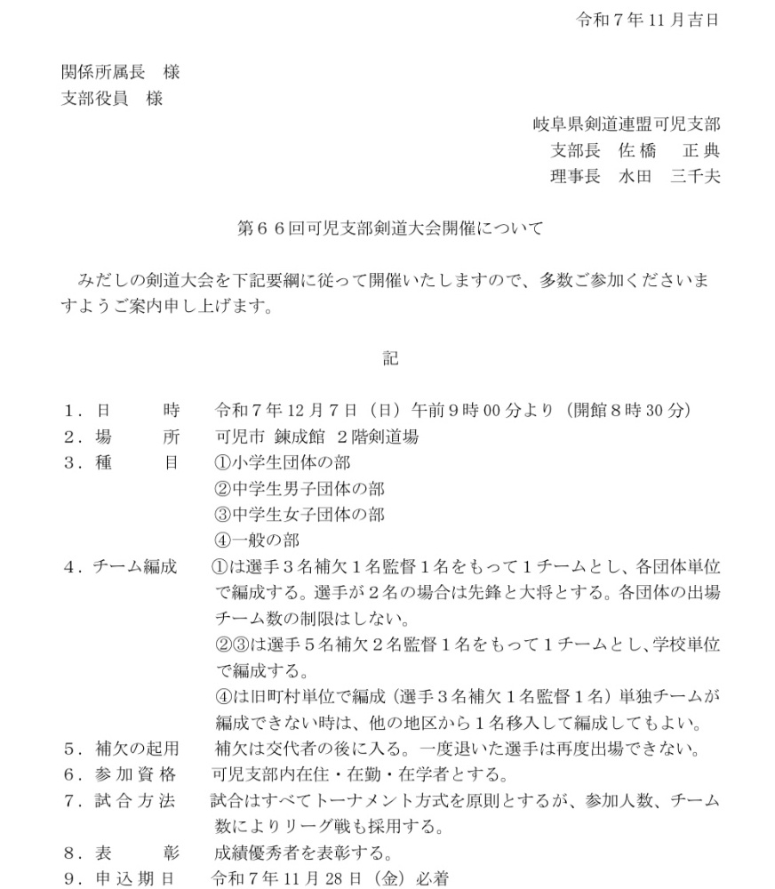 岐阜県剣道連盟可児支部のHPへようこそ!